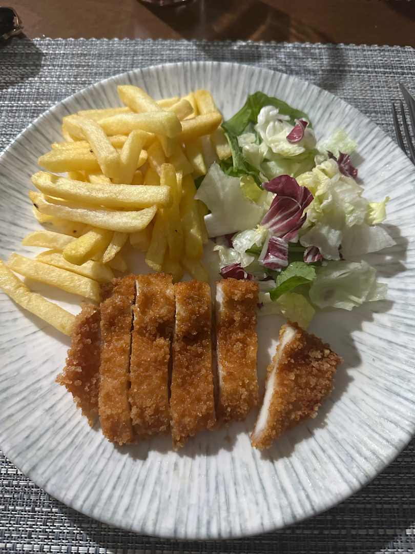 Schnitzel mit Pommes im Nachtrestaurant 21:30Uhr - 7Uhr morgens.