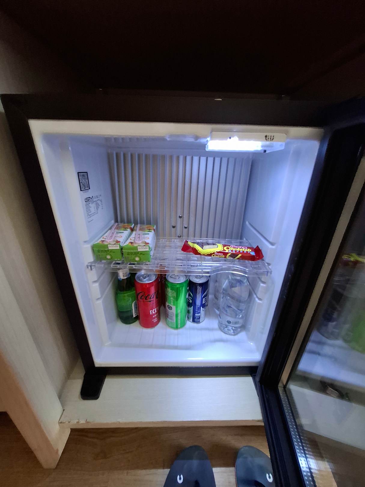Minibar bei Ankunft. Getränke werden, wenn leer aufgefüllt.