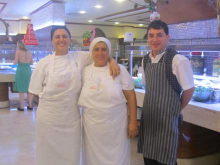 Köchinnen und Kellner beim Frühstück