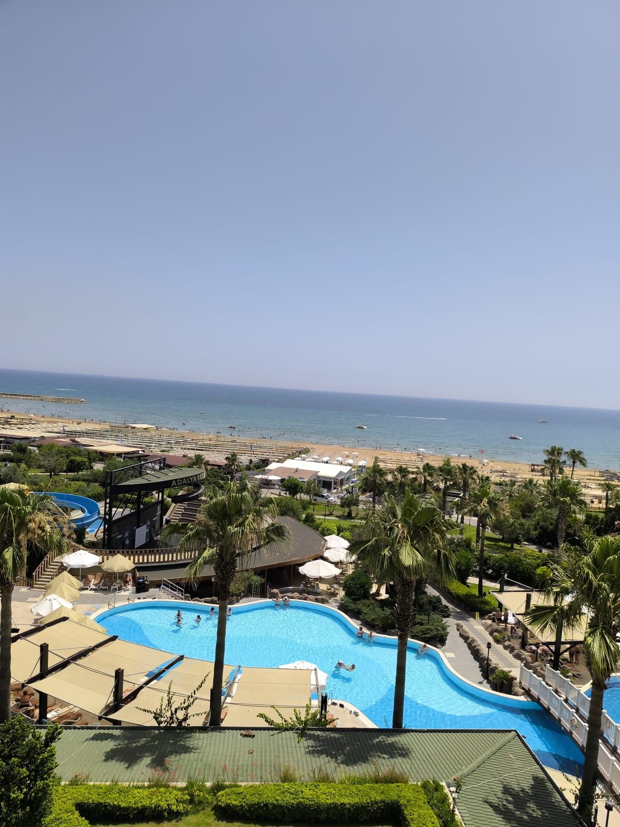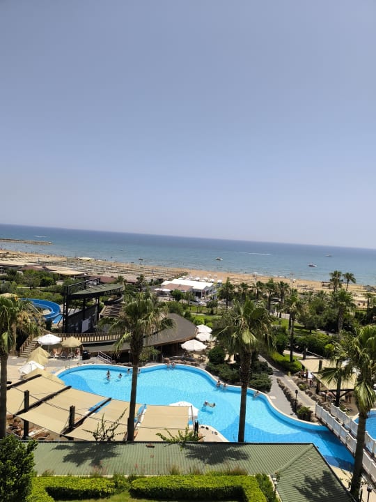 Blick aus dem Zimmer auf den Pool und das Meer