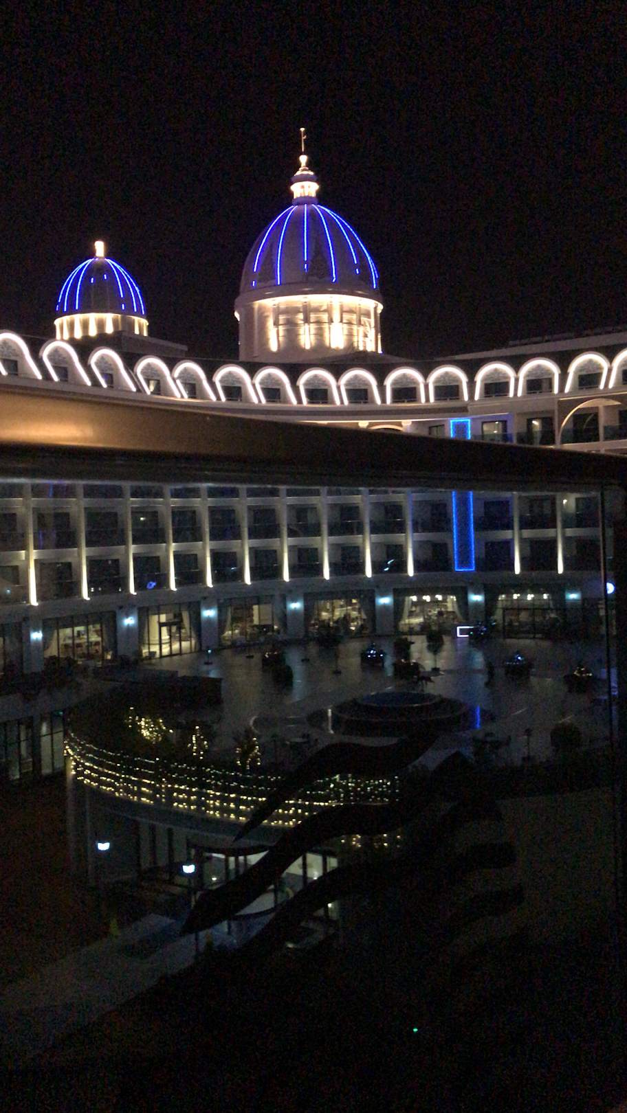 Blick aus dem Balkon zum Hotel