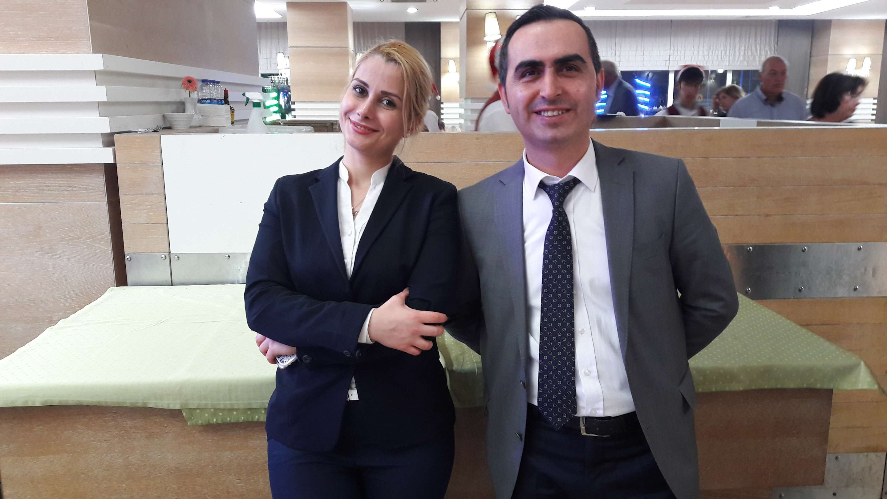 Rechts Serkan M.der Front Manager mit Mitarbeiterin im Restaurant
