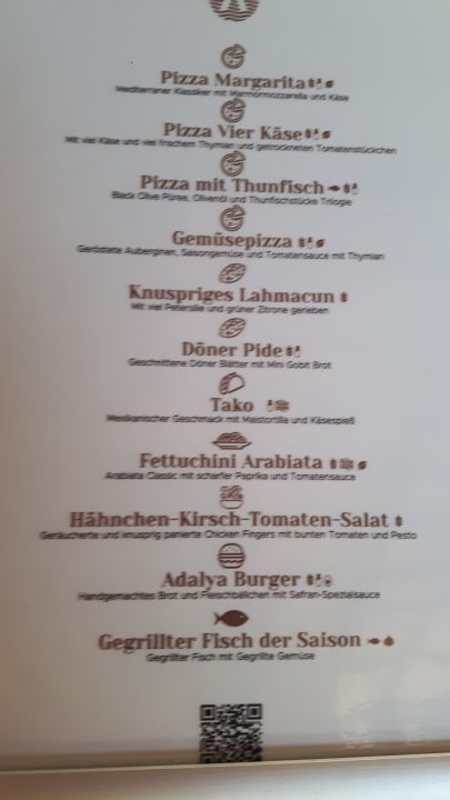 Menükarte der Strandbar