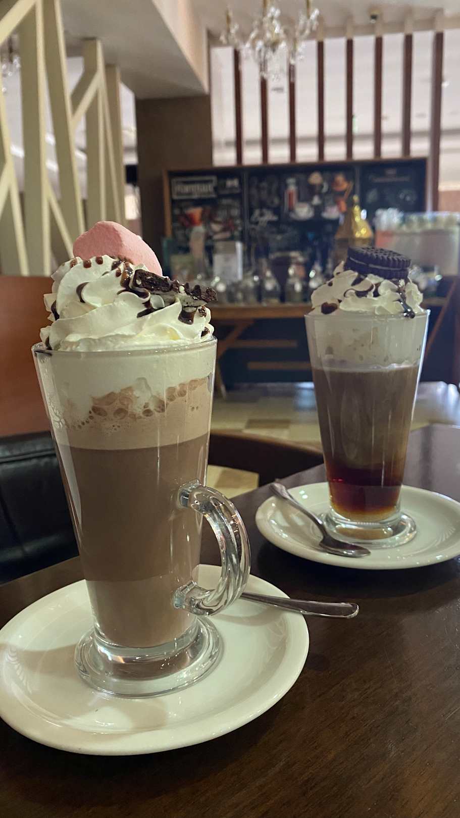 Irish Coffee und einen heisse Schokolade in der -1 Bar