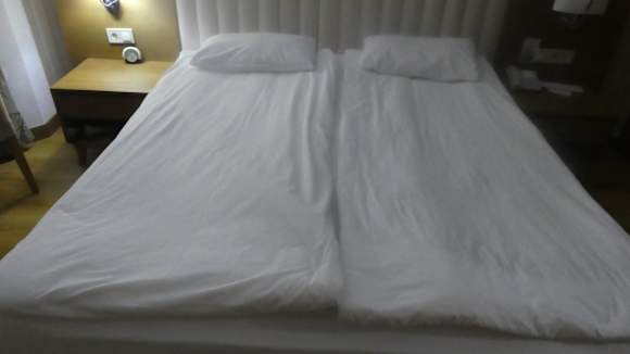 das Bett hatte eine dürchgehende Matratze, wenn sich eine Person bewegte bewegte sich die zweite Person zwangsläuf. Es war dem Hotel nicht möglich diese gegen zwei Einzelmatratzen oder zwei Einzelbetten auszutauschen. Kein 5-Sterne-Hotel