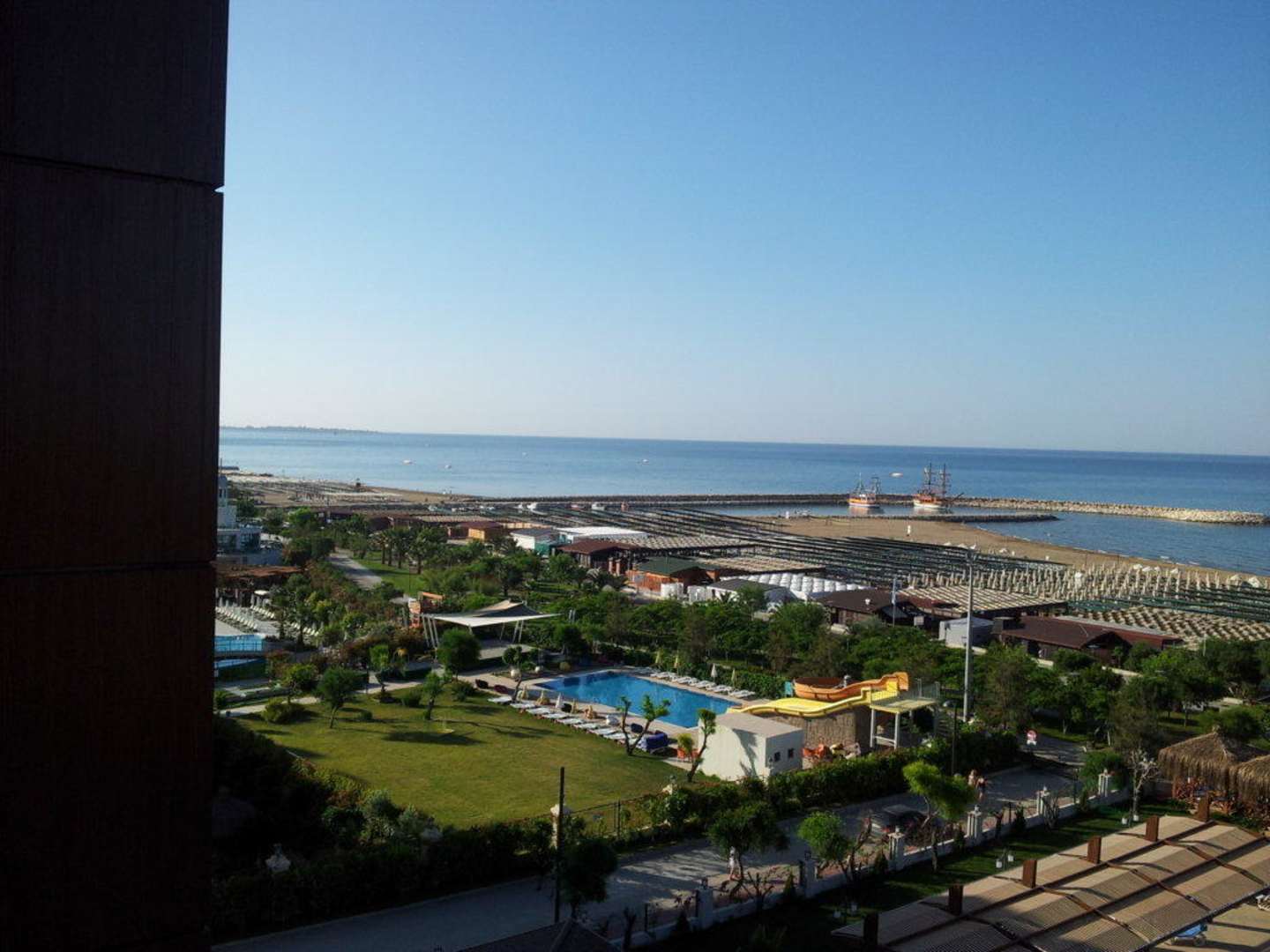 Blick aus 3311 zum Hafen EvrensekiBlick vom Hotelzimmer 3111 zum Hafen Evrenseki. In der Ferne links am Horizont Side (ca. 10km)