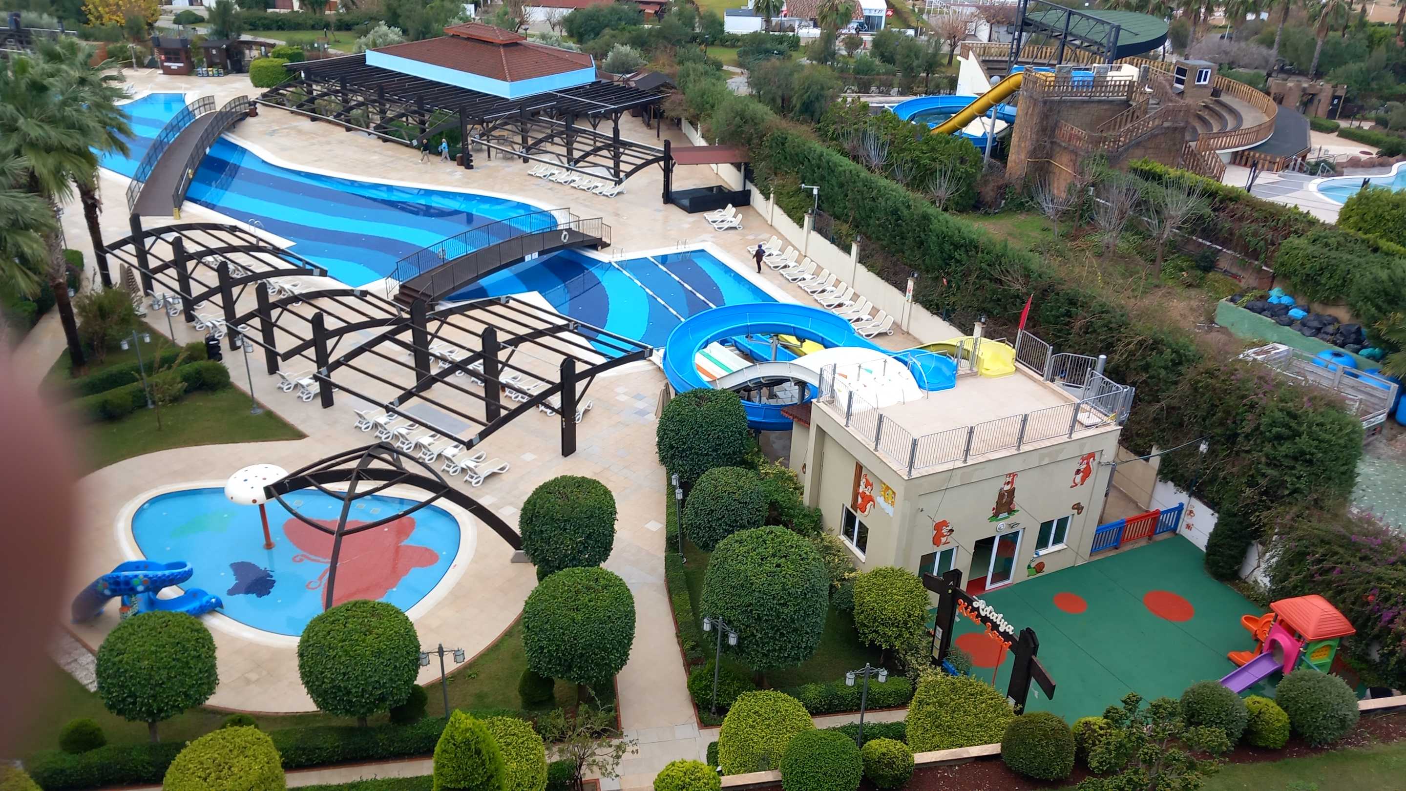 Blick auf dem Pool vom Balkon