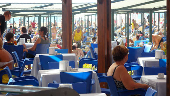 Mittags und Kaffeetisch am Strand