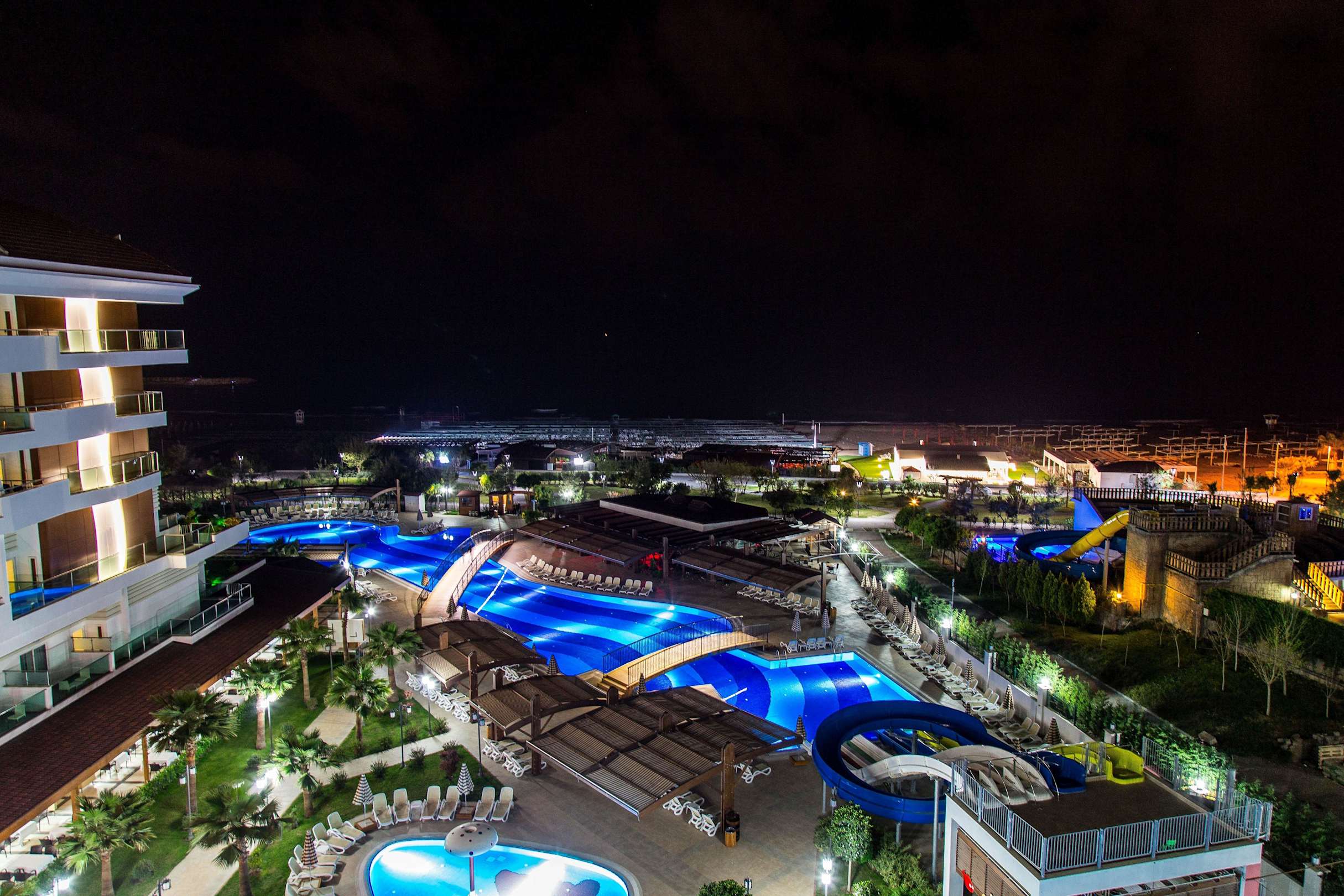 Poolanlage bei Nacht