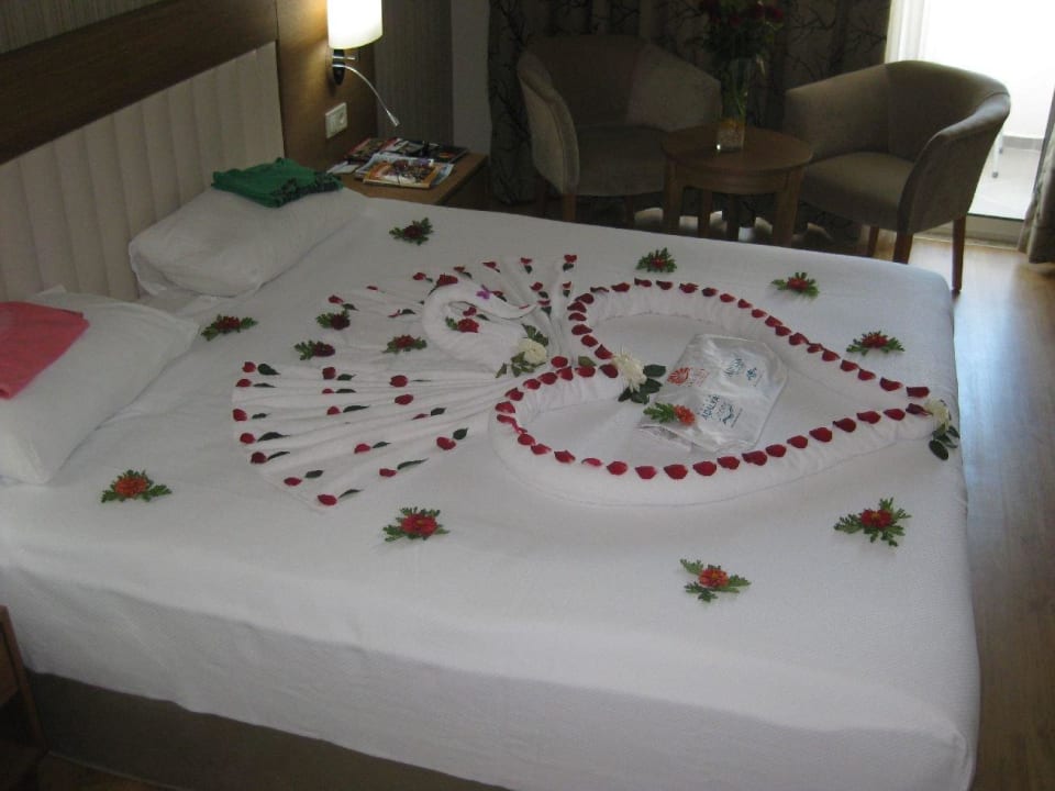 Das ganze Bett dekoriert