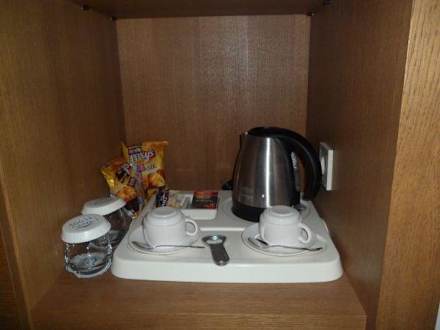 Tee- und Kaffeezubereitungsmöglichkeit mit Minibar