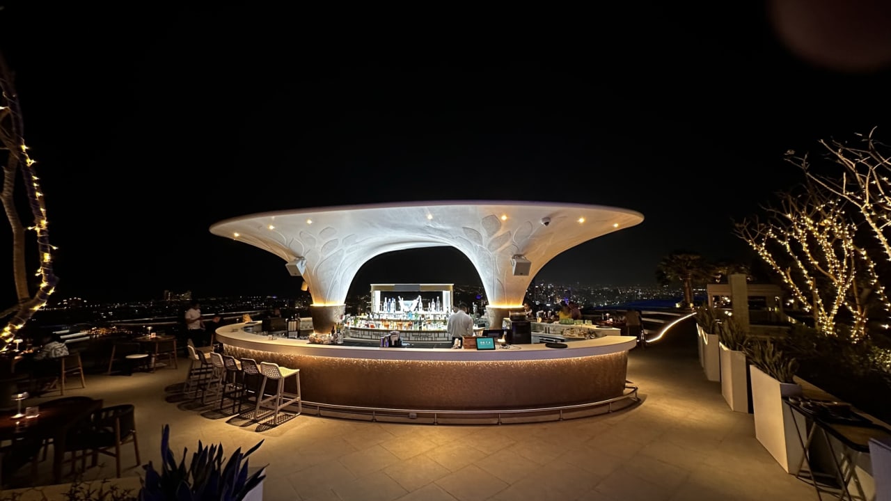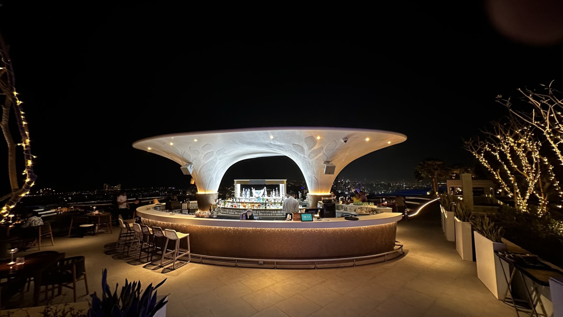 Bar am rooftop Pool bei Nacht