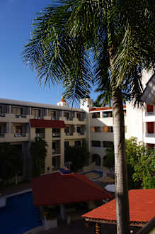 Blick in den Innenhof auf die Poolbar