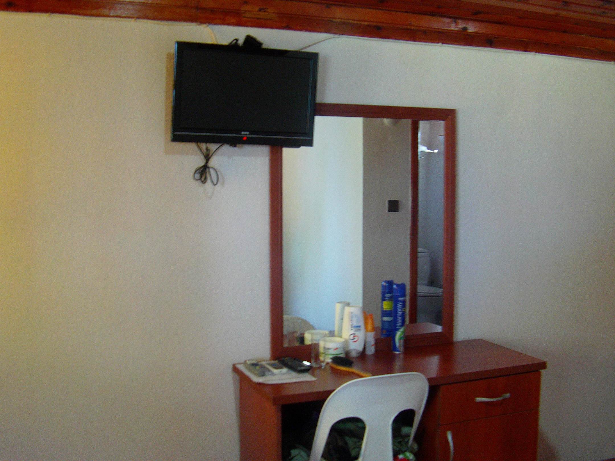 Fernseher und SchminktischMan konnte bequem beim Tv schauen einschlafen ^^ .Alle Deutschen Programme empfangen.Zimmer 8