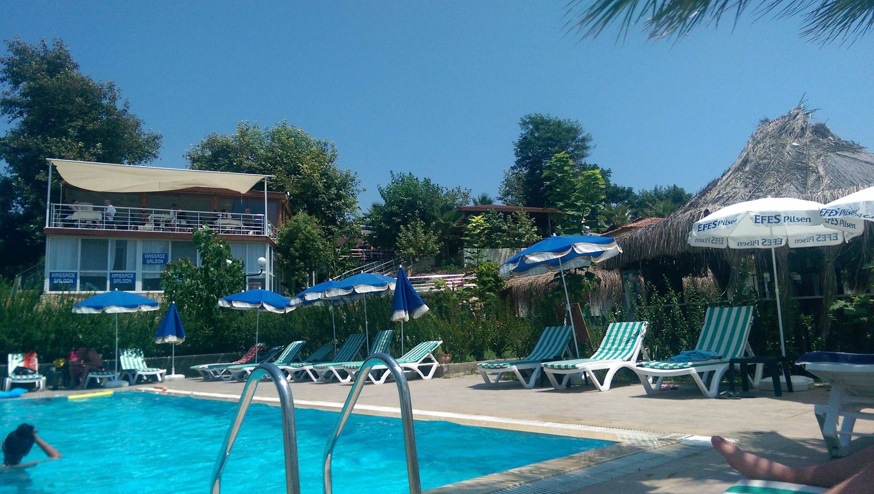 Sicht vom Pool zum Restaurant