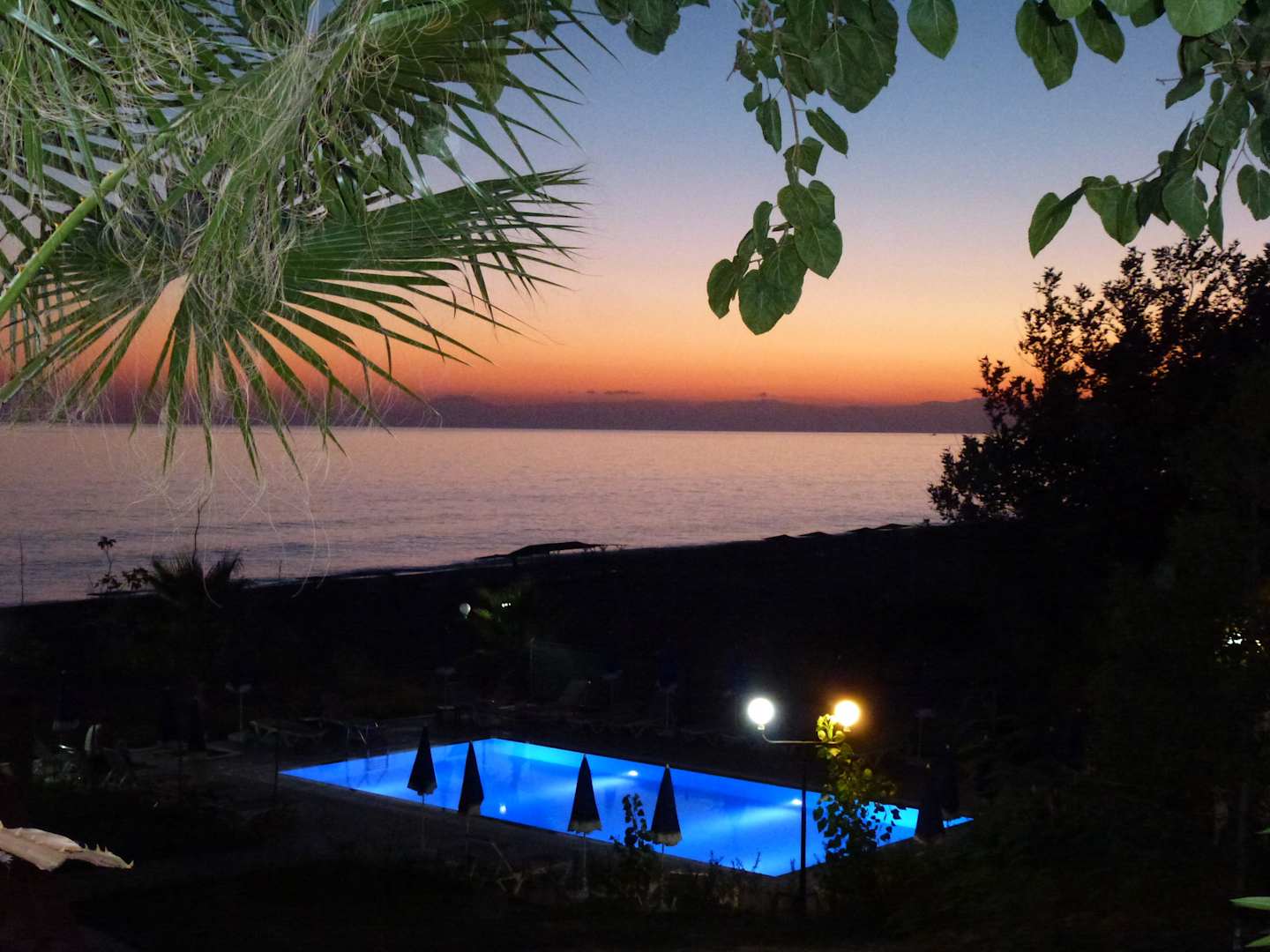 SonnenuntergangAussicht auf den Sonnenuntergang von der Restaurant-Terasse