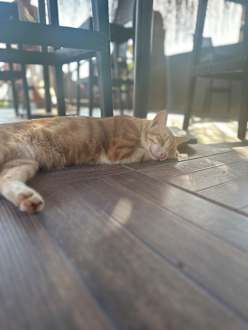 Die Katzen sind immer da. Auch im Restaurant.