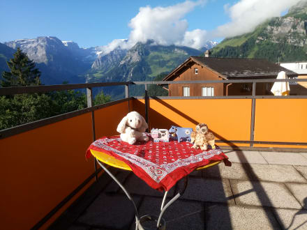 AusblickBlick vom Balkon des Hotel Adrenalin Braunwald in die Glarner Berge (Selbsanft, Bifertenstock, Tödi, Chamerstock)