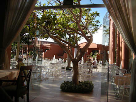 Ausblick auf die Terrasse vom Restaurant