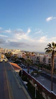 Blick von der Dachterrasse auf die Straße hinter dem Hotel