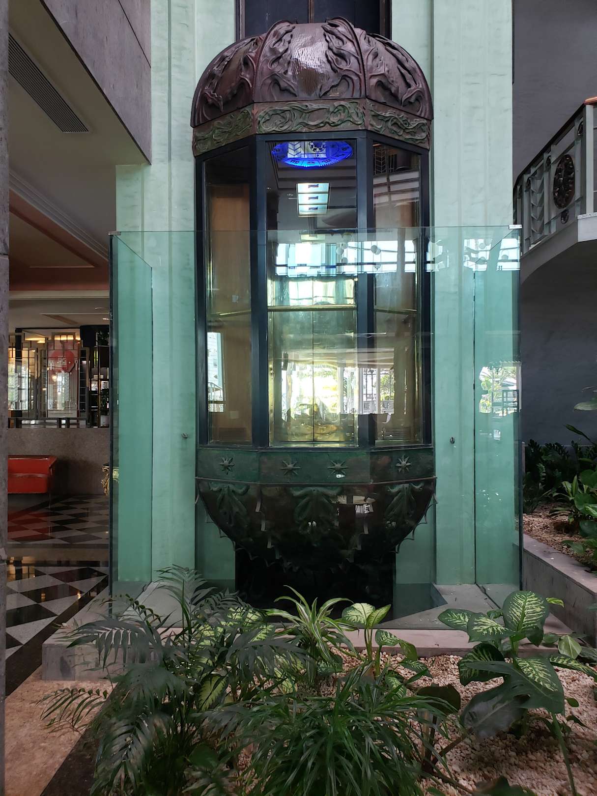 der Fahrstuhl zu den Etagen im Haupthaus