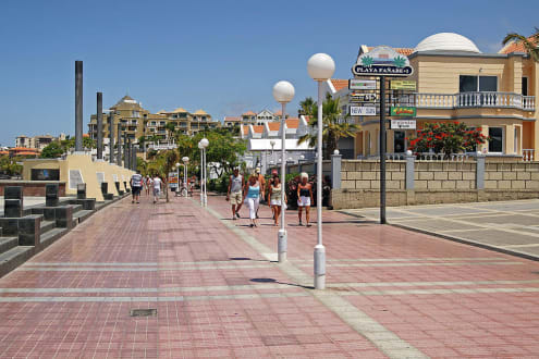 Playa de Fanabe Promenade und im Hintergrund ist Hotel Jardines de Nivaria zu sehen.