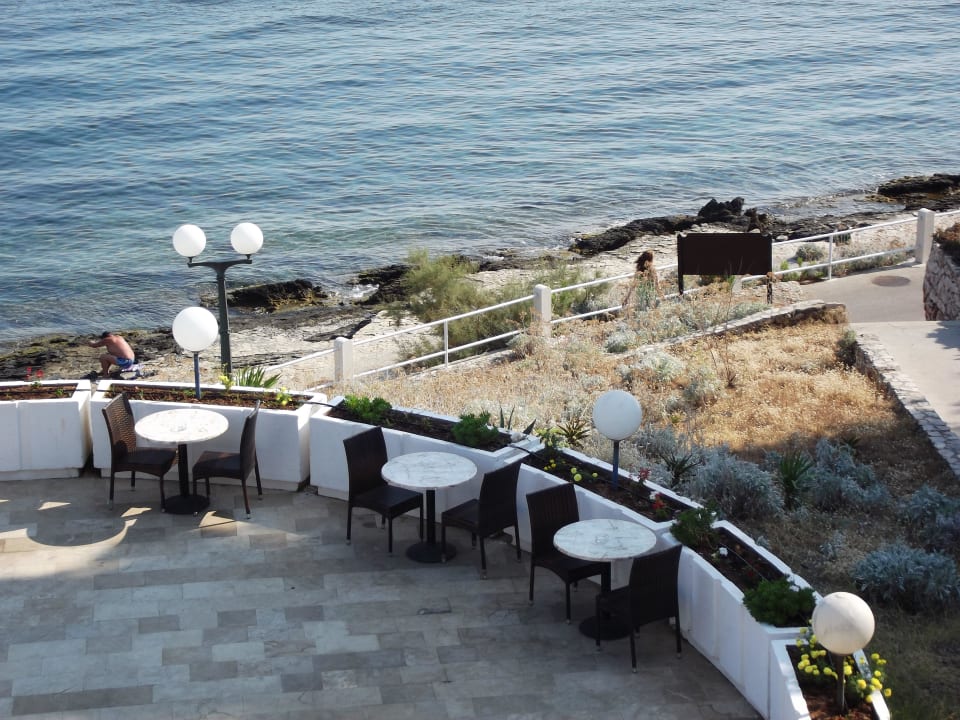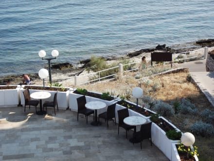 Restaurant sur terrasse avec vue sur plage