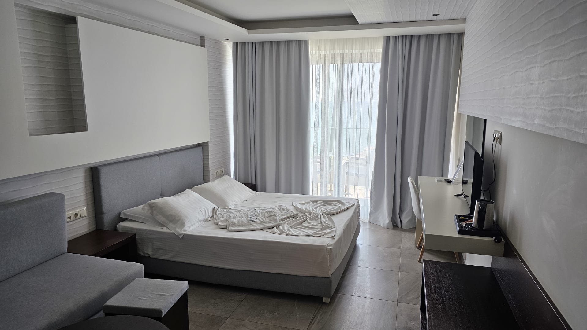 das Hauptschalfzimmer mit Meerblick