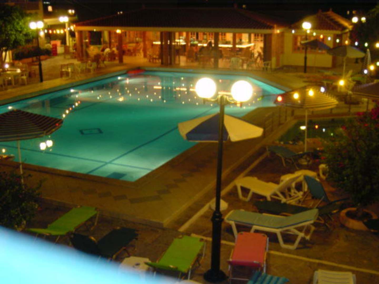 Pool bei Nacht mit Blick auf die Bar