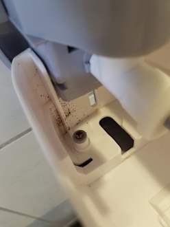 Badezimmer seifenspender am Waschbecken 3 Tage lang leer dazu mit Schimmel und schmutz Bathroom soap dispenser at the sink for 3 days empty with mold and dirt