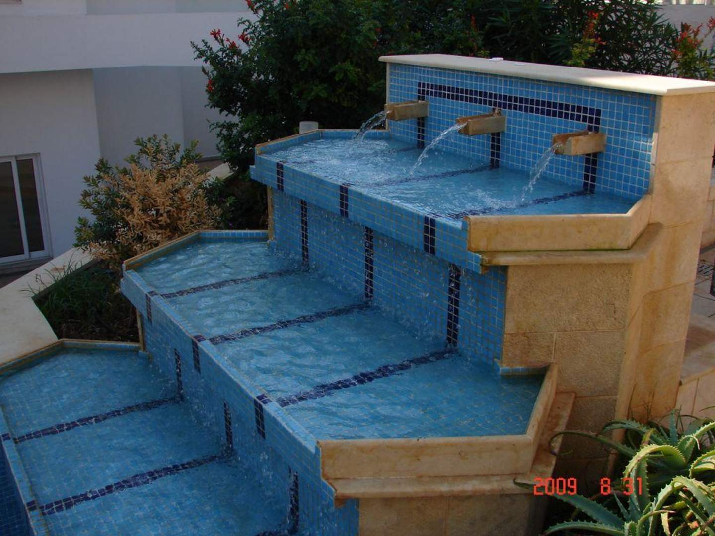 Mały wodospad przy mniejszym basenie