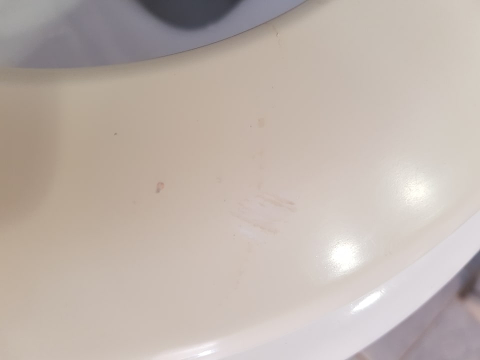 Zimmerklobrille anscheinend sehr alt, dazu verschmutzt und gerissen oder gebrochen