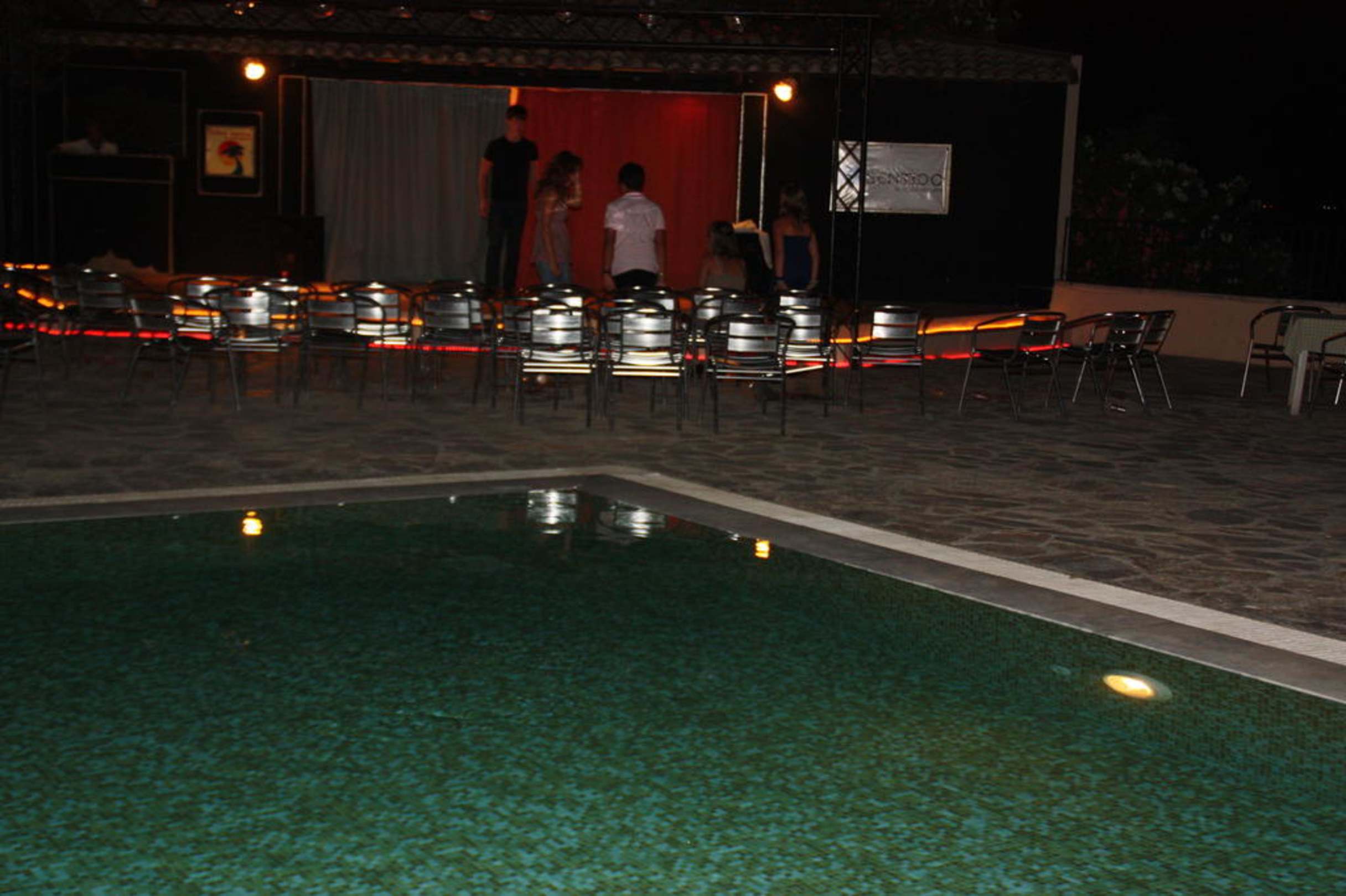 Der kleine Pool mit der Bühne Aeolos Beach Resort