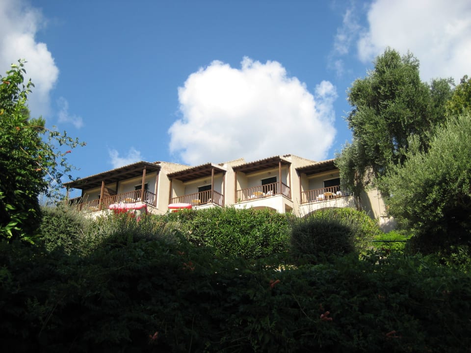 Diese Bungalows liegen links oberhalb des Haupthauses.