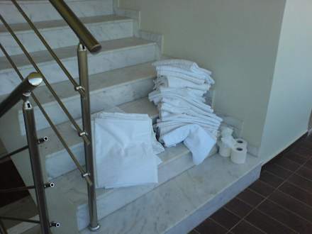 Frische Handücher auf schmutzigen Stufen