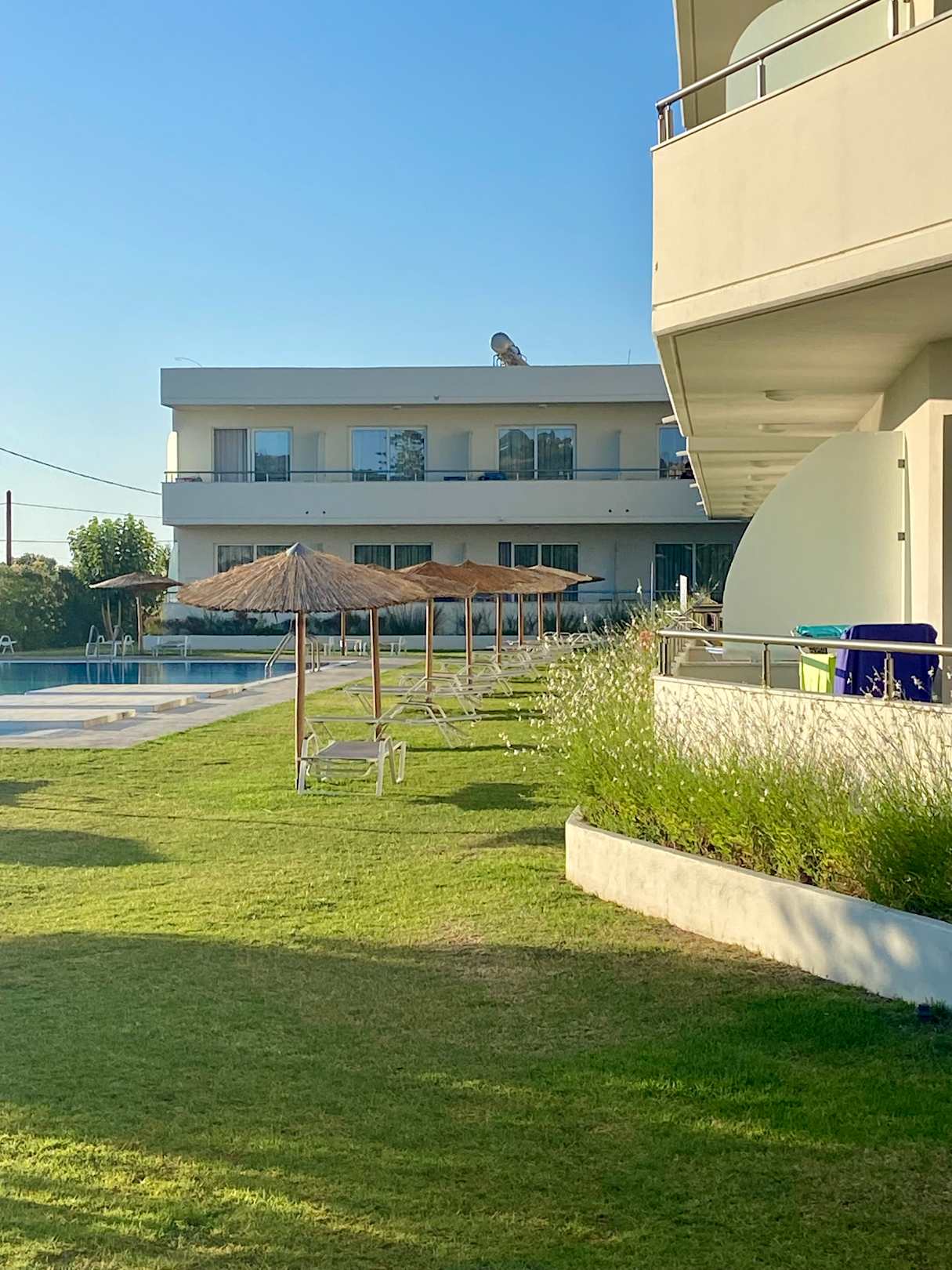 Erwachsenenpool . Man achte auf die Abstände Zimmer zur Liege . Manchmal kein schöner Anblick wen man auf dem Balkon einen Kaffee trinken möchte.