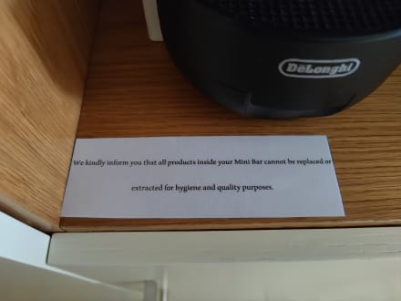Hinweis, dass man die Minibar nicht mit eigenen Getränken auffüllen darf. Angeblich aus Hygienegründen. Achtung wird alle zwei Tage vom Manager kontrolliert. Er geht auch ins Zimmer, wenn man nicht da ist.