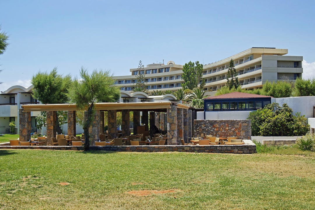 Hotel Ansicht und im Vordergrund ist Garten-Restaurant zu sehen.