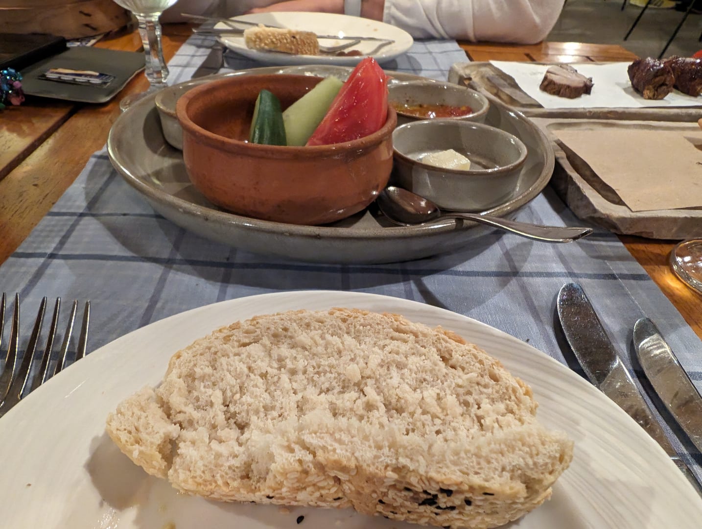 GastroZur Vorspeise gab es verschiedene Brotsorten und Salate mit verschiedenen Saucen. Sehr gut portioniert.