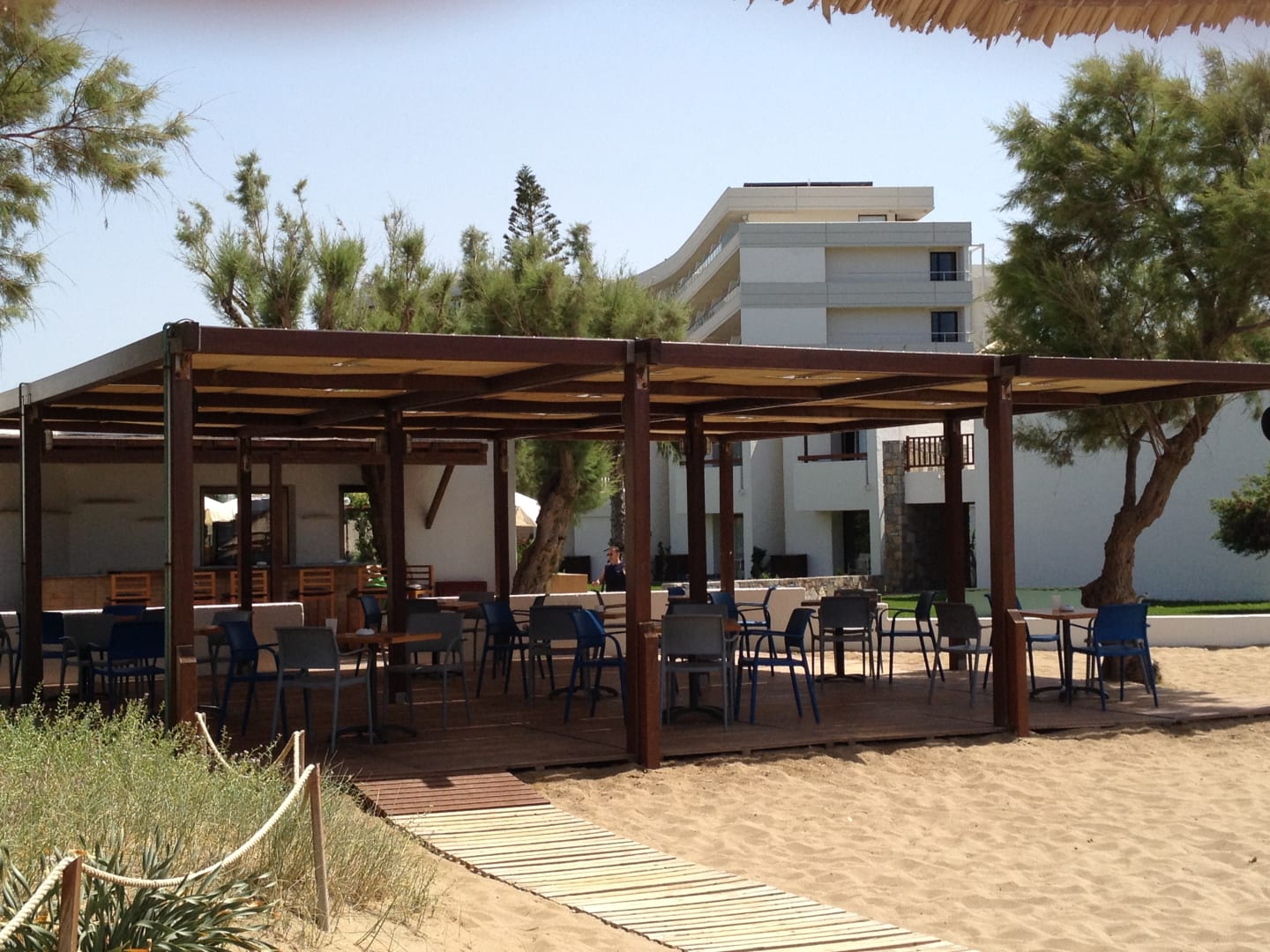 Blick vom Strand auf die Strandbar