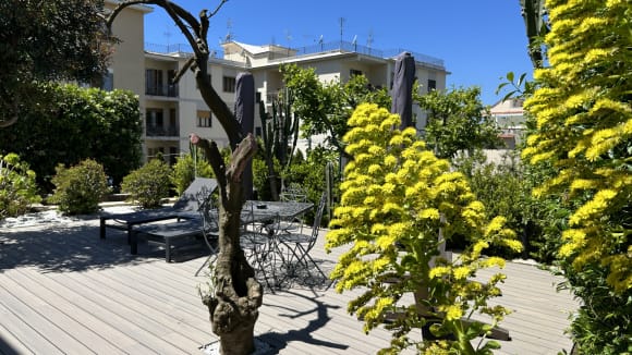 Eigene Terrasse mit Liegestühlen