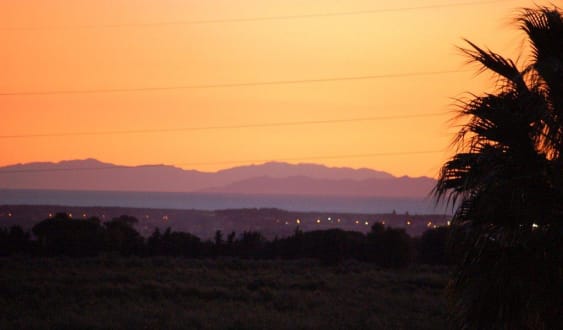 Blick auf KorsikaVom Haupthaus blickt man über den Olivenhain und die Weinberge in Richtung Cecina. Im Hintergrund das ca 80km entfernte Korsika