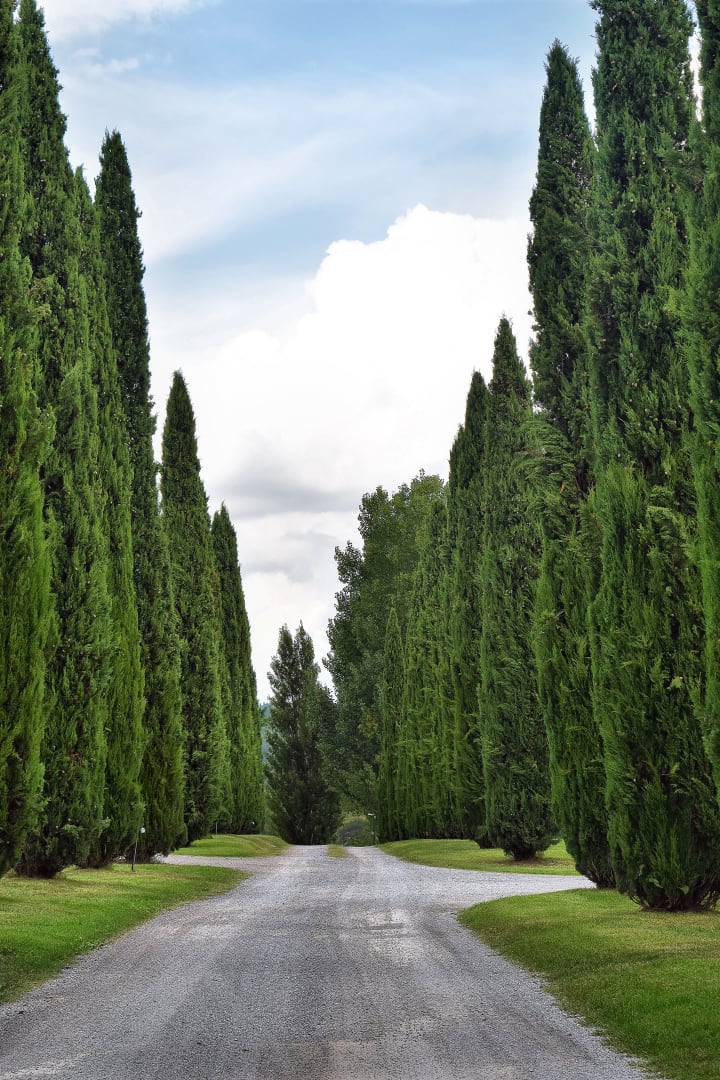 Die für die Toskana typische Zypressenallee führen zum Hotel.