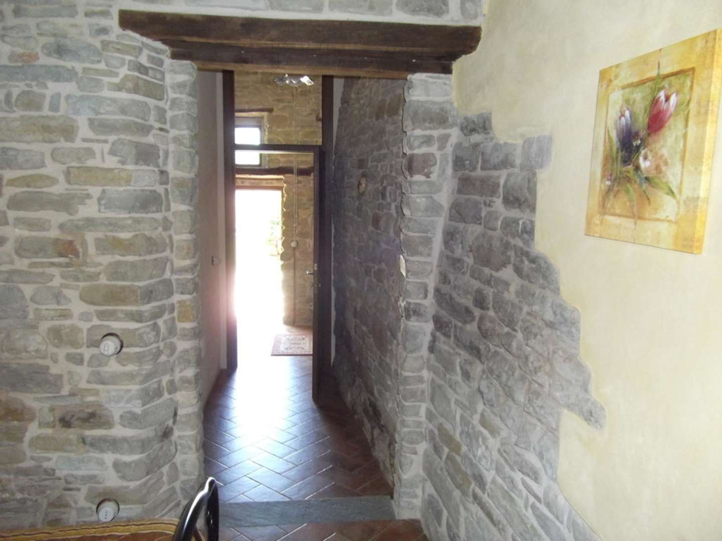Der Zugang zu unserm Zimmer mit Sichtmauerwerk