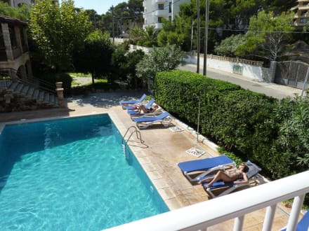 Blick vom Zimmer zum Pool