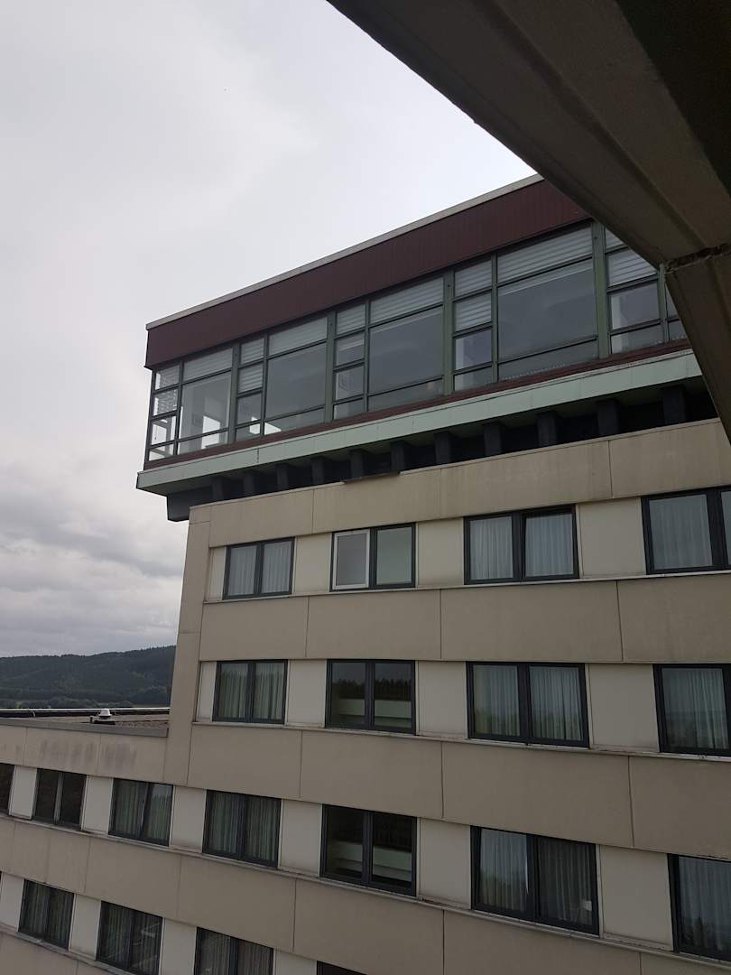 Aussicht von unsrem Zimmer aufs Restaurant im 12. Stock