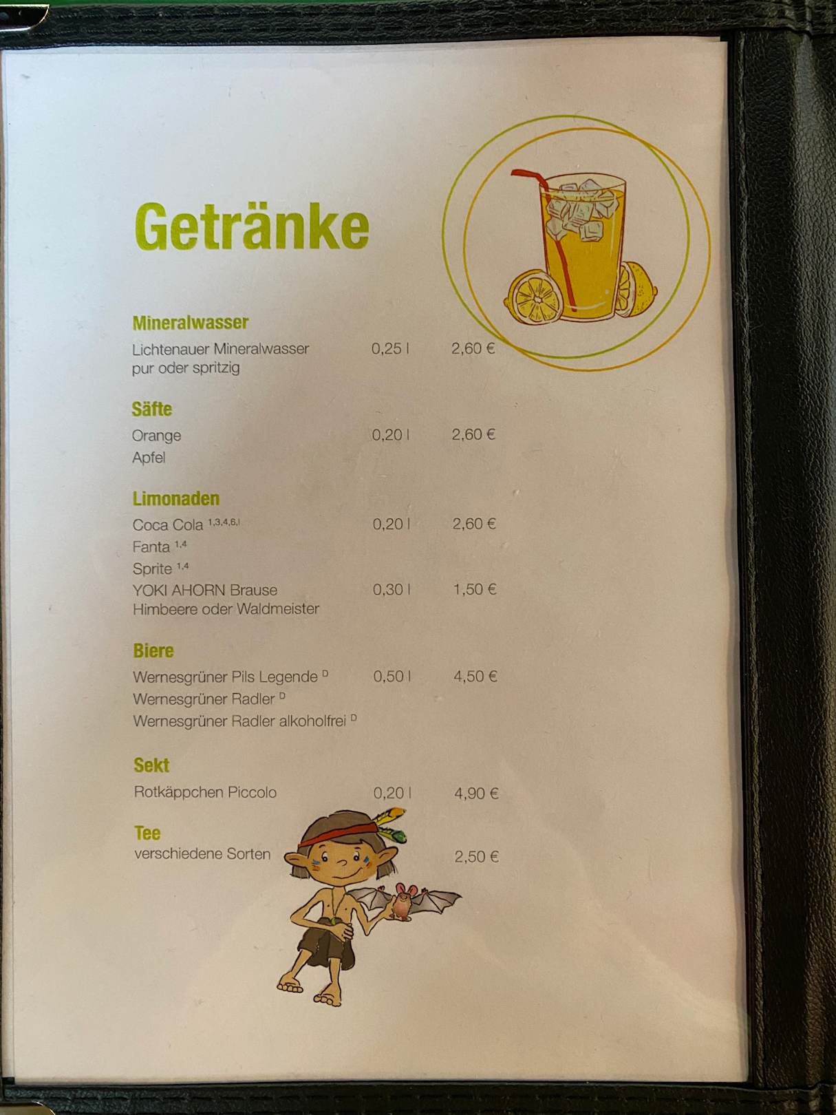 GastroKleine Speisekarte im Tobe Paradies.