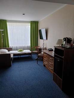 ZimmerZimmer 749 33qm Suite für 4 Personen mit Ausziehschafsofa. Viel Platz, aber wir hätten uns in dem ersten Zimmer auch ein Doppelbett gewünscht.
