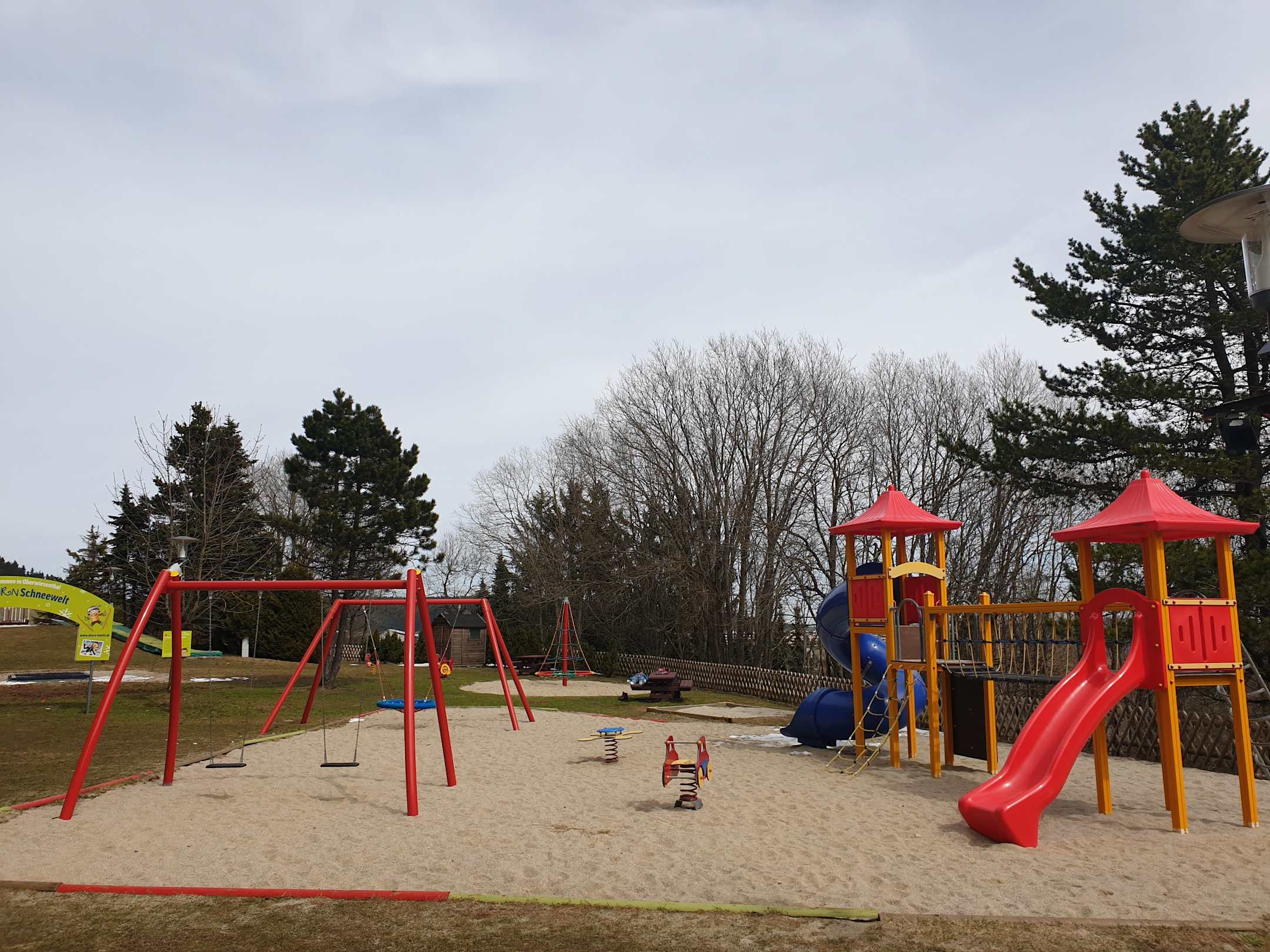 Spielplatz hinten nachdem der Schnee weg war