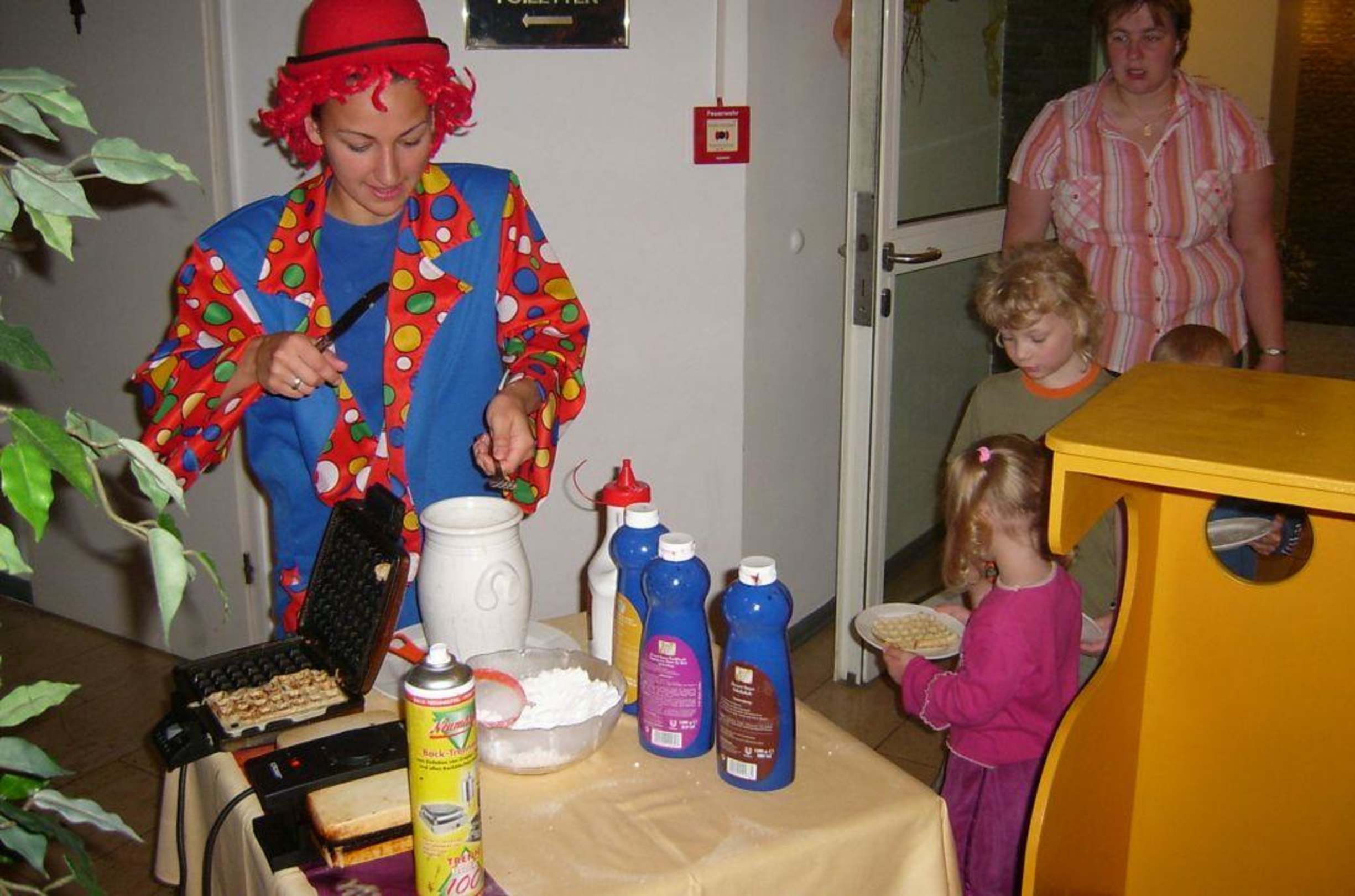KinderfrühstückClown Timbo backt täglich Waffeln